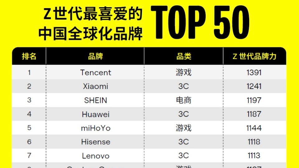 “Z世代最喜爱的中国全球化品牌50强”出炉,SHEIN登上电商品类榜首