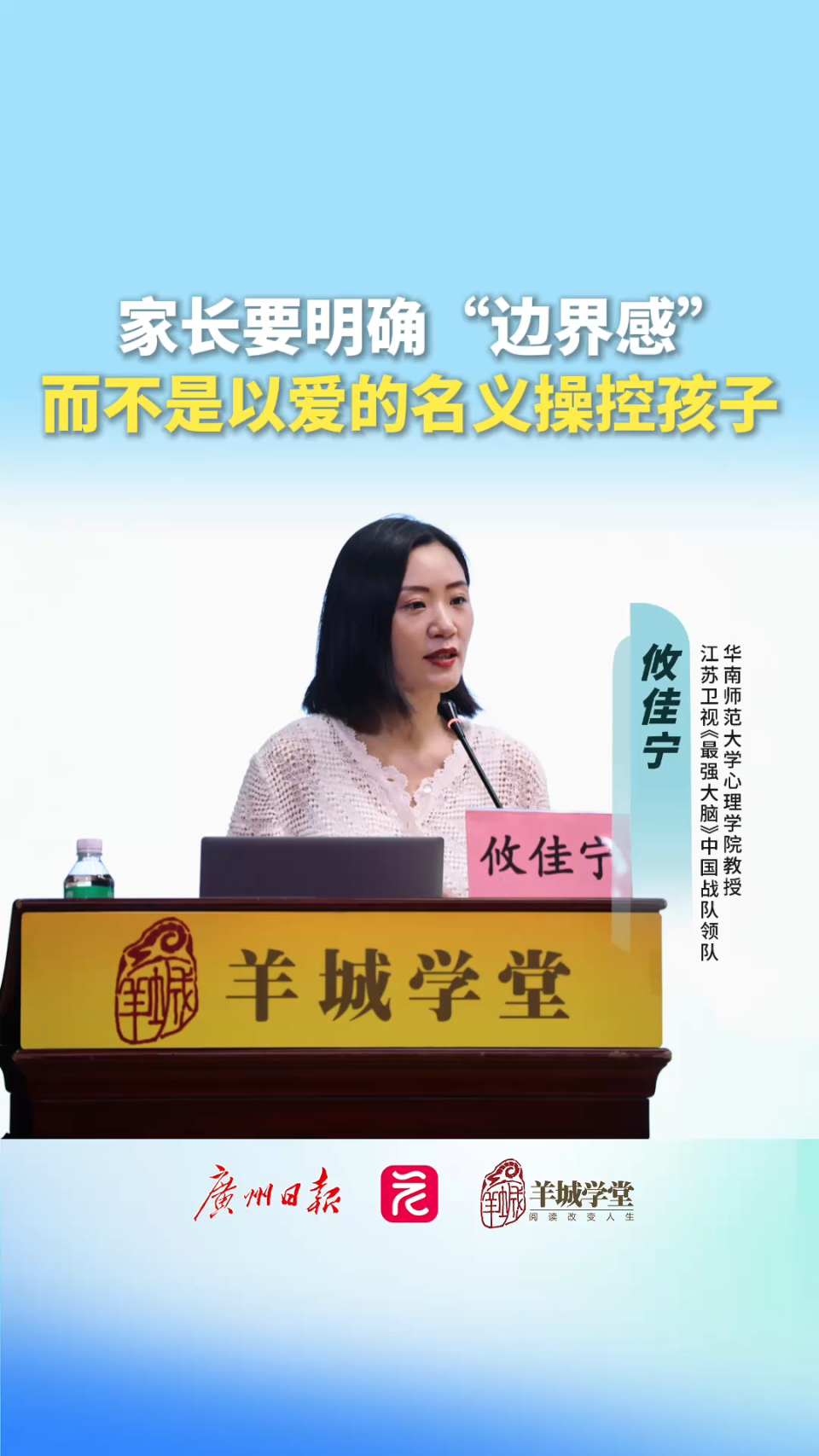 羊城学堂现场视频|攸佳宁:家长要明确“边界感”,而不是以爱的名义操控孩子