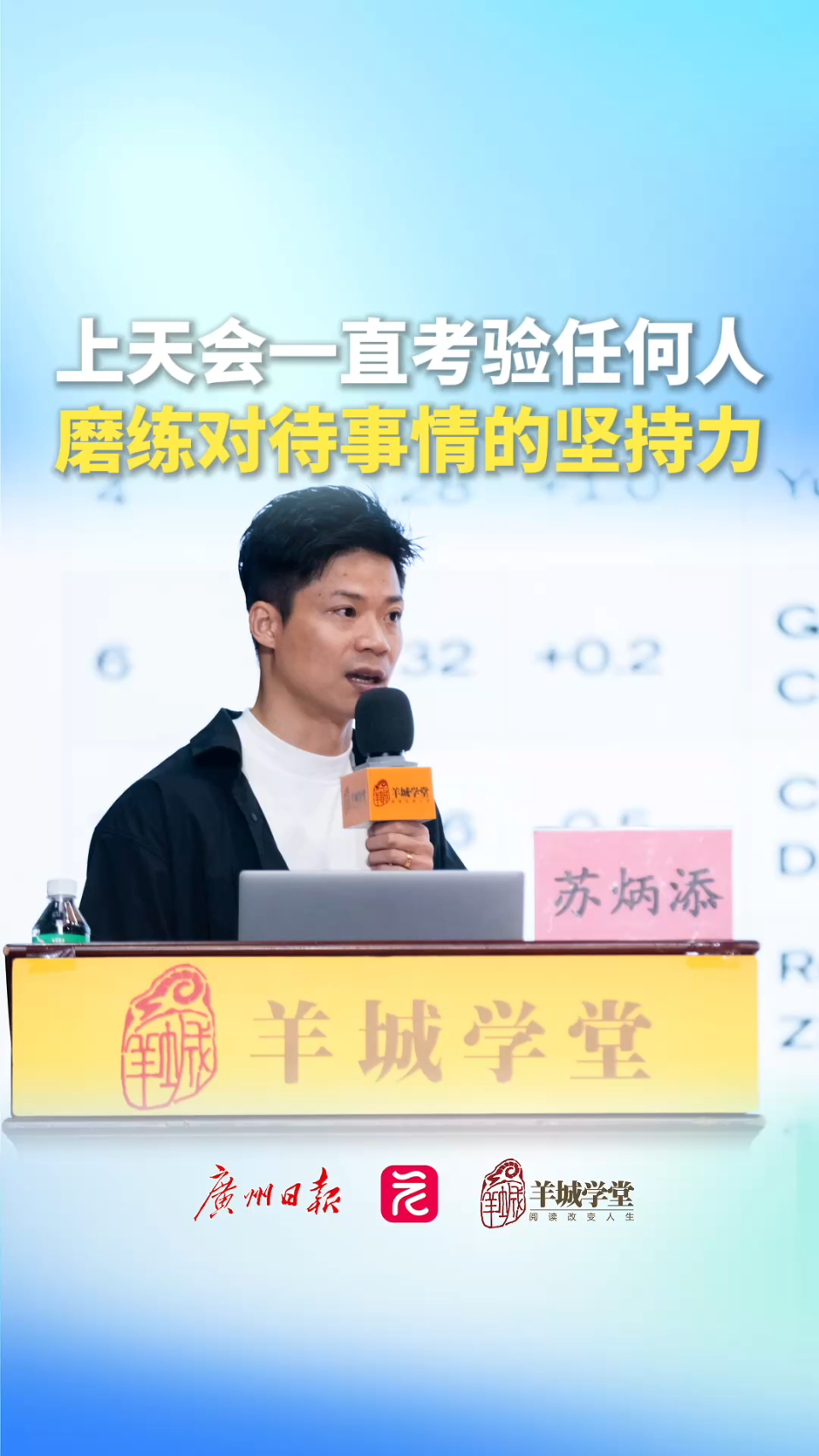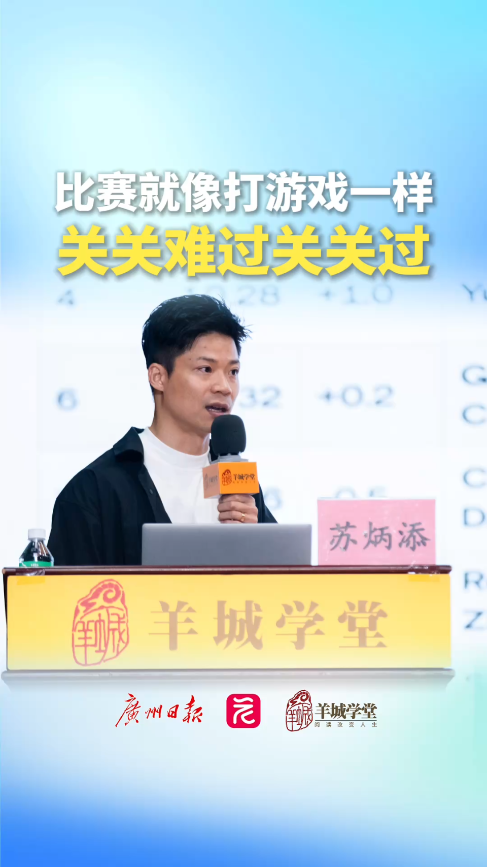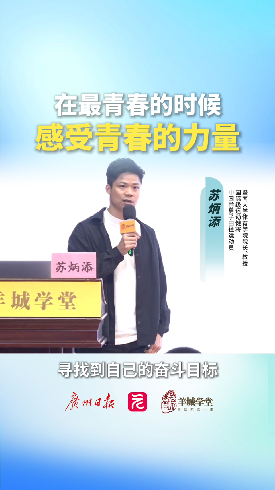 羊城学堂现场视频|苏炳添:上天会一直考验任何人,磨练对待事情的坚持力