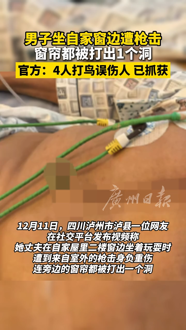 男子坐自家窗边遭枪击 窗帘都被打出1个洞 官方:4人打鸟误伤人 已抓获