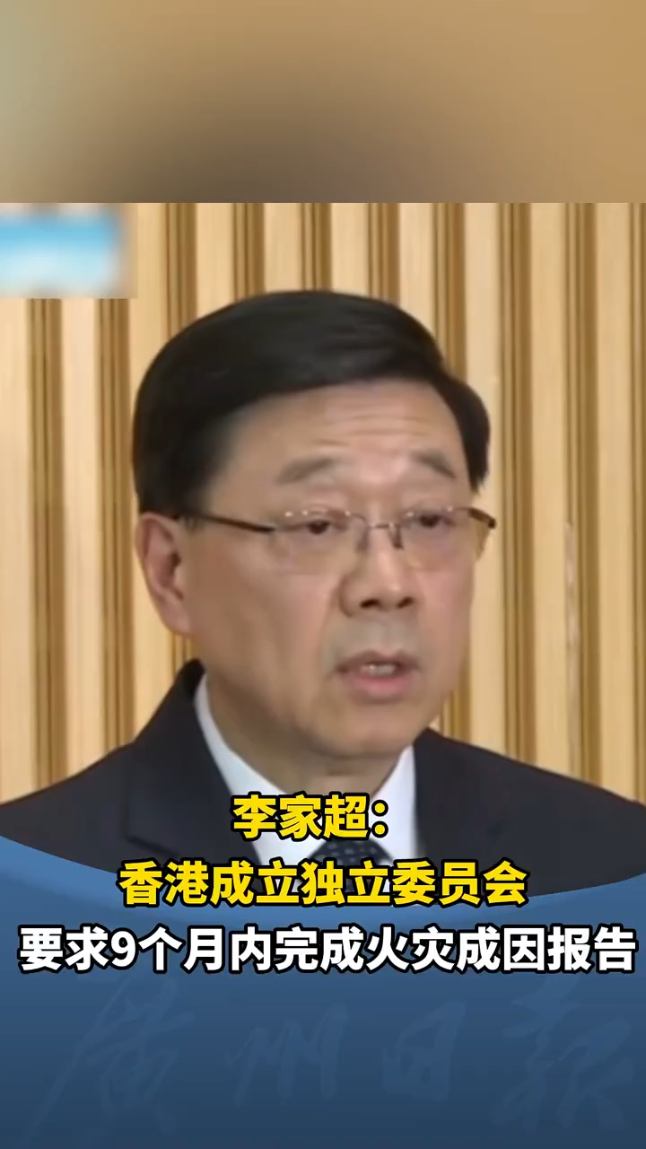 李家超: 香港成立独立委员会,要求9个月内完成火灾成因报告