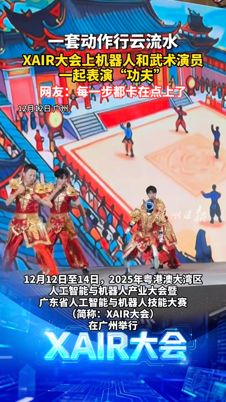 一套动作行云流水,XAIR大会上机器人和武术演员一起表演“功夫”