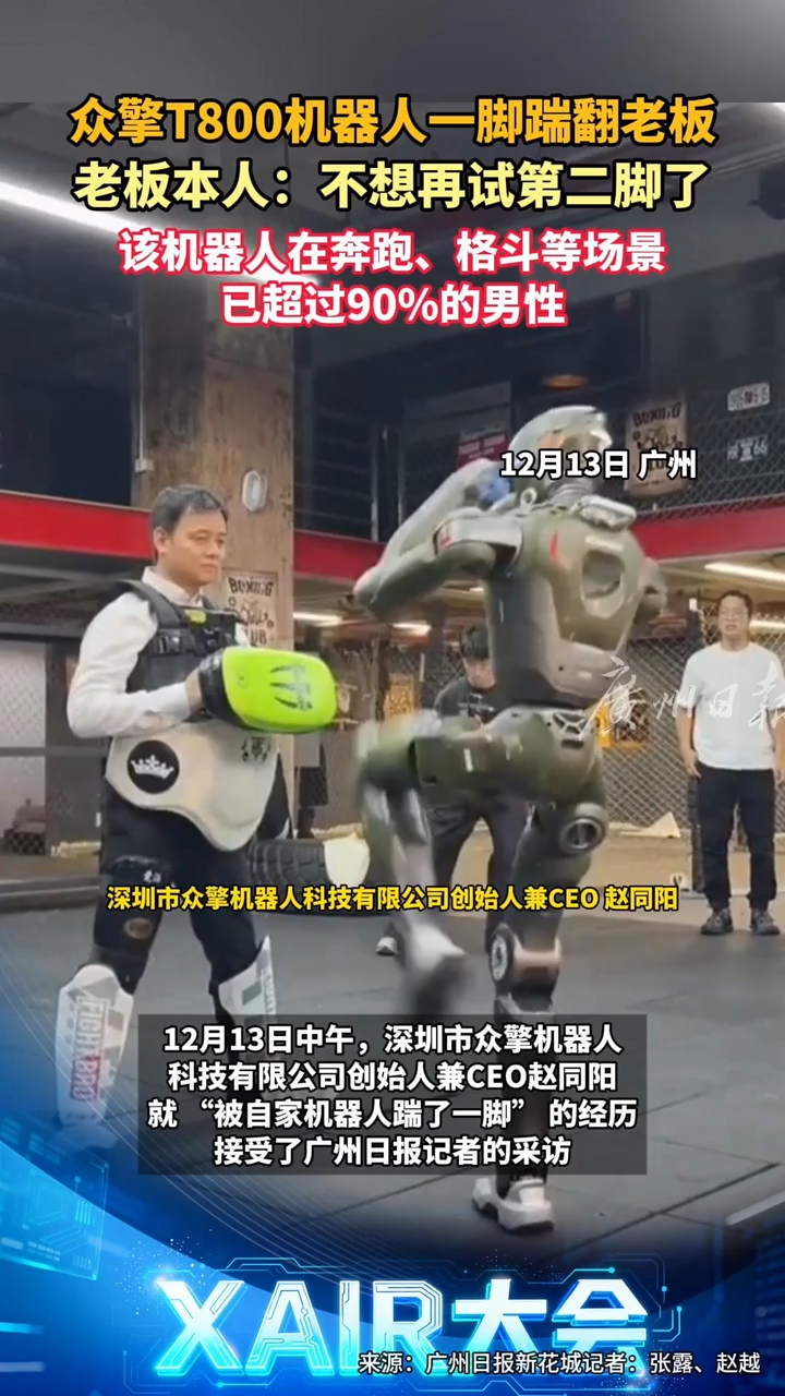 众擎T800机器人一脚踹翻老板 老板本人:不想再试第二脚了