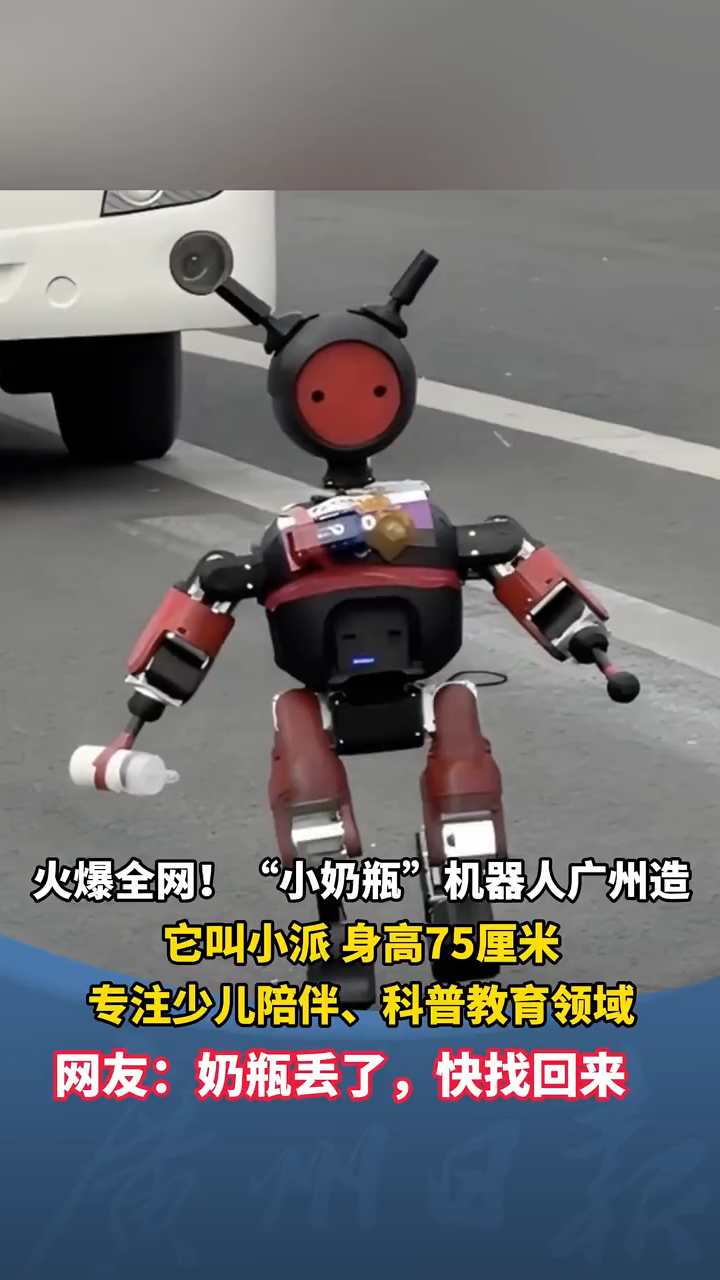 火爆全网!“小奶瓶”机器人广州造 它叫小派 身高75厘米 专注少儿陪伴、科普教育领域 网友:奶瓶丢了,快找回来
