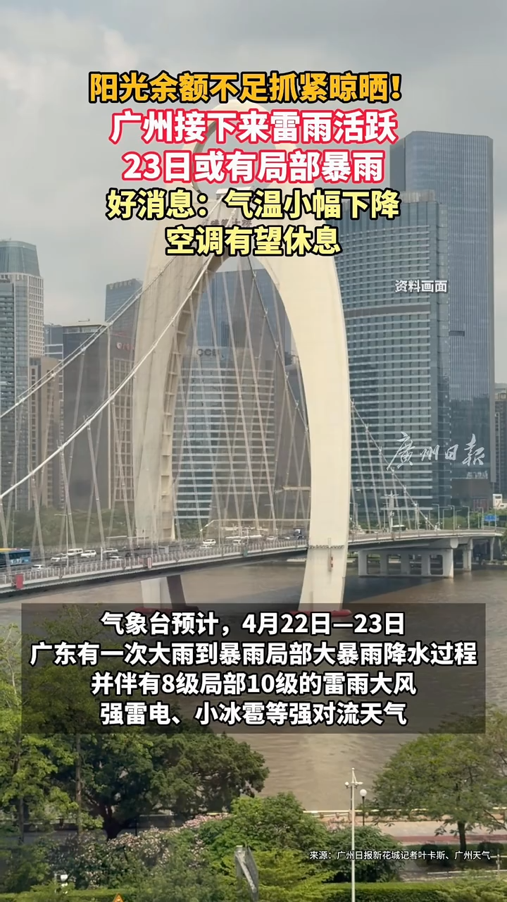 抓紧晾晒!广州接下来雷雨活跃 23日或有局部暴雨 好消息:气温小幅下降