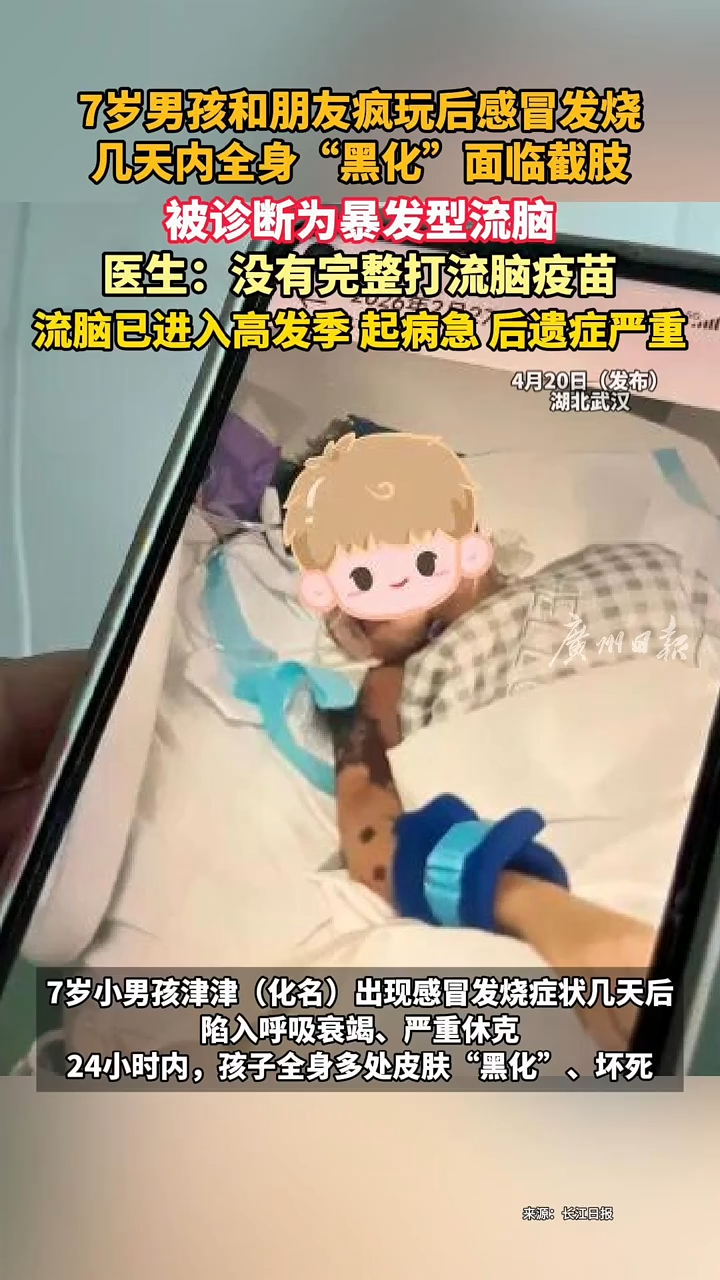 7岁男孩和朋友疯玩后感冒发烧 几天内全身“黑化”面临截肢 被诊断为暴发型流脑
