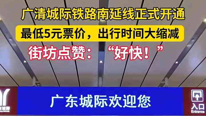广清城际铁路南延线正式开通 最低票价5元