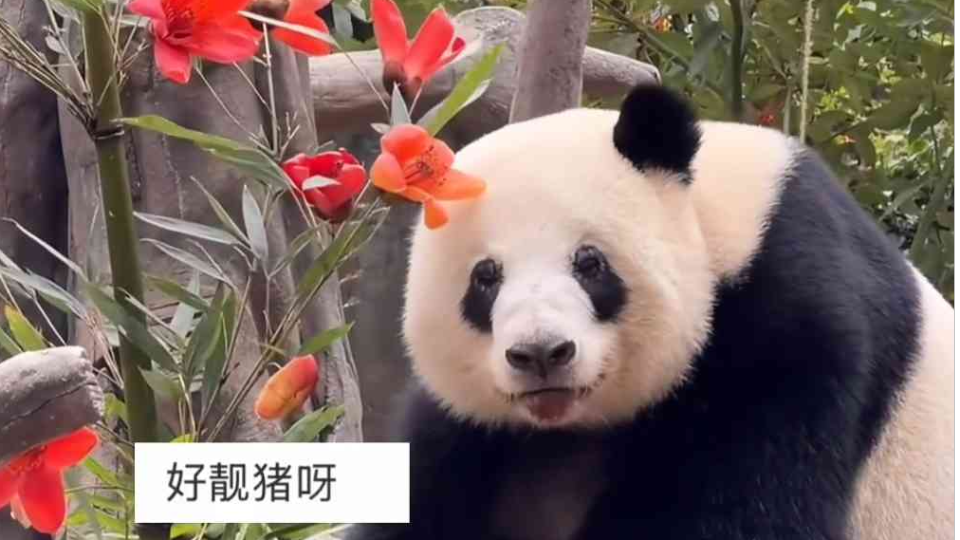 靓花配靓猫,广州的春天,大熊猫与木棉花更般配