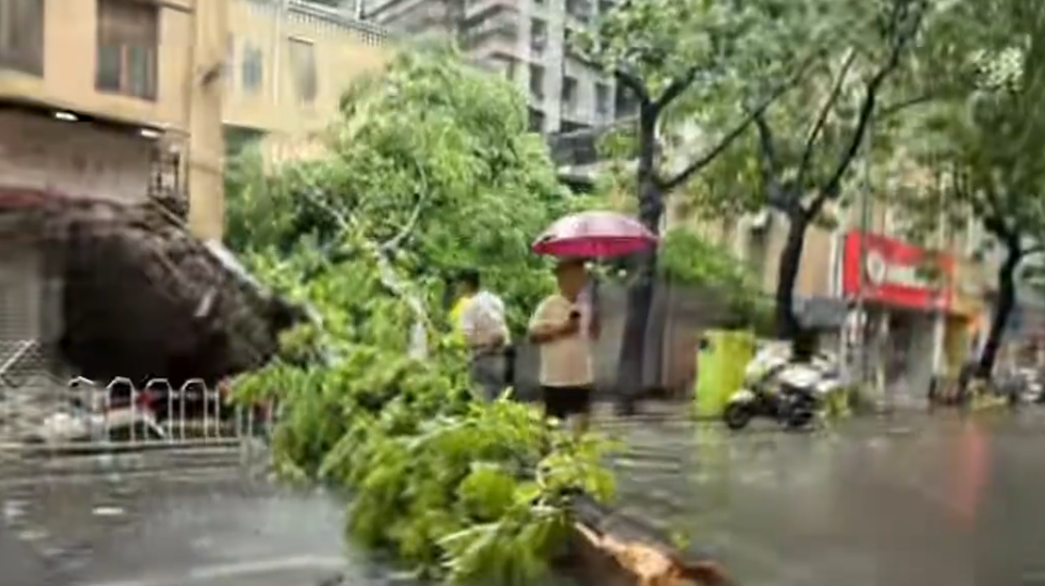 广州遭遇强对流天气,人民中路有大树倒伏