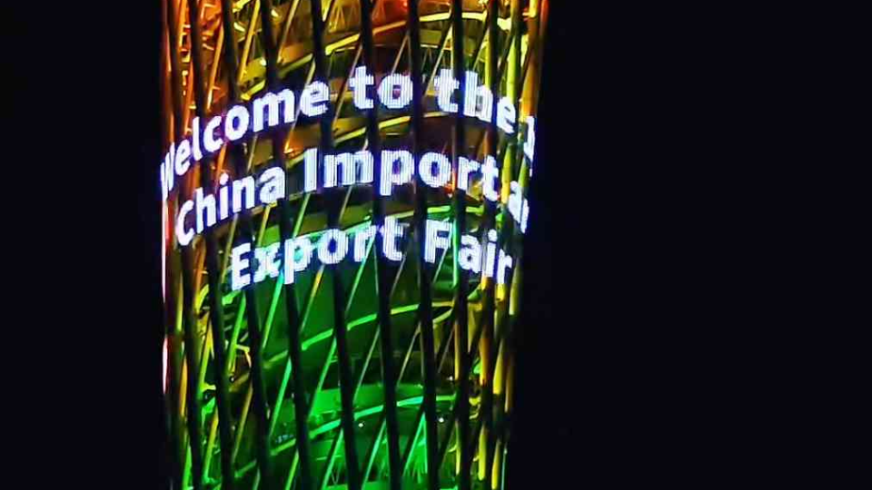 广州的热情永远拿得出手!广州塔中英文双语字幕欢迎广交会参展商