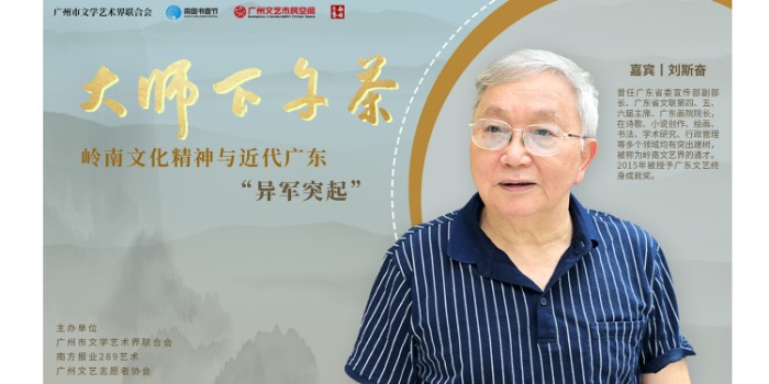 简介:8月30日15:00,由广州市文学艺术界联合会、南方报业289艺术、广州文艺志愿者协会主办的大师下午茶直播活动将在广州文艺市民空间(岭南活力非遗艺术馆)直播。本次活动作为南国书香节特别活动,将邀请岭南文艺大家刘斯奋作为主讲嘉宾,分享主题为:岭南文化精神与近代广东“异军突起”。×