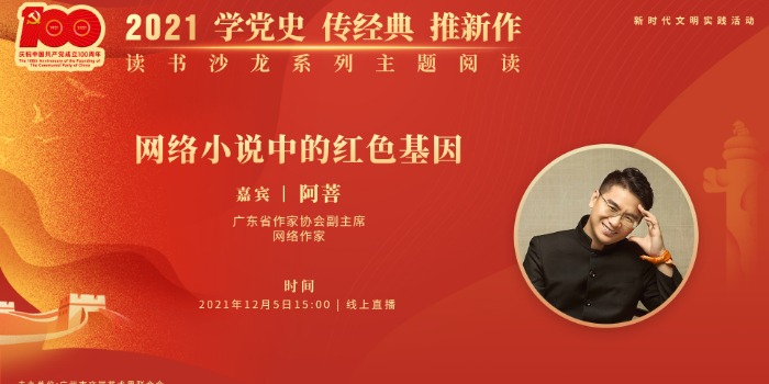 简介:现定于12月5日(周日)15:00举行新时代文明实践直播之第十四期“学党史 传经典 推新作”系列主题阅读活动,本次活动邀请到了广东省作家协会副主席、网络作家阿菩,以“网络小说中的红色基因”为主题,解读网络小说在结合红色革命历史方面呈现出的新特点,并为这一类型小说的发展与进步提出建议。欢迎大家在线收看并积极转发!