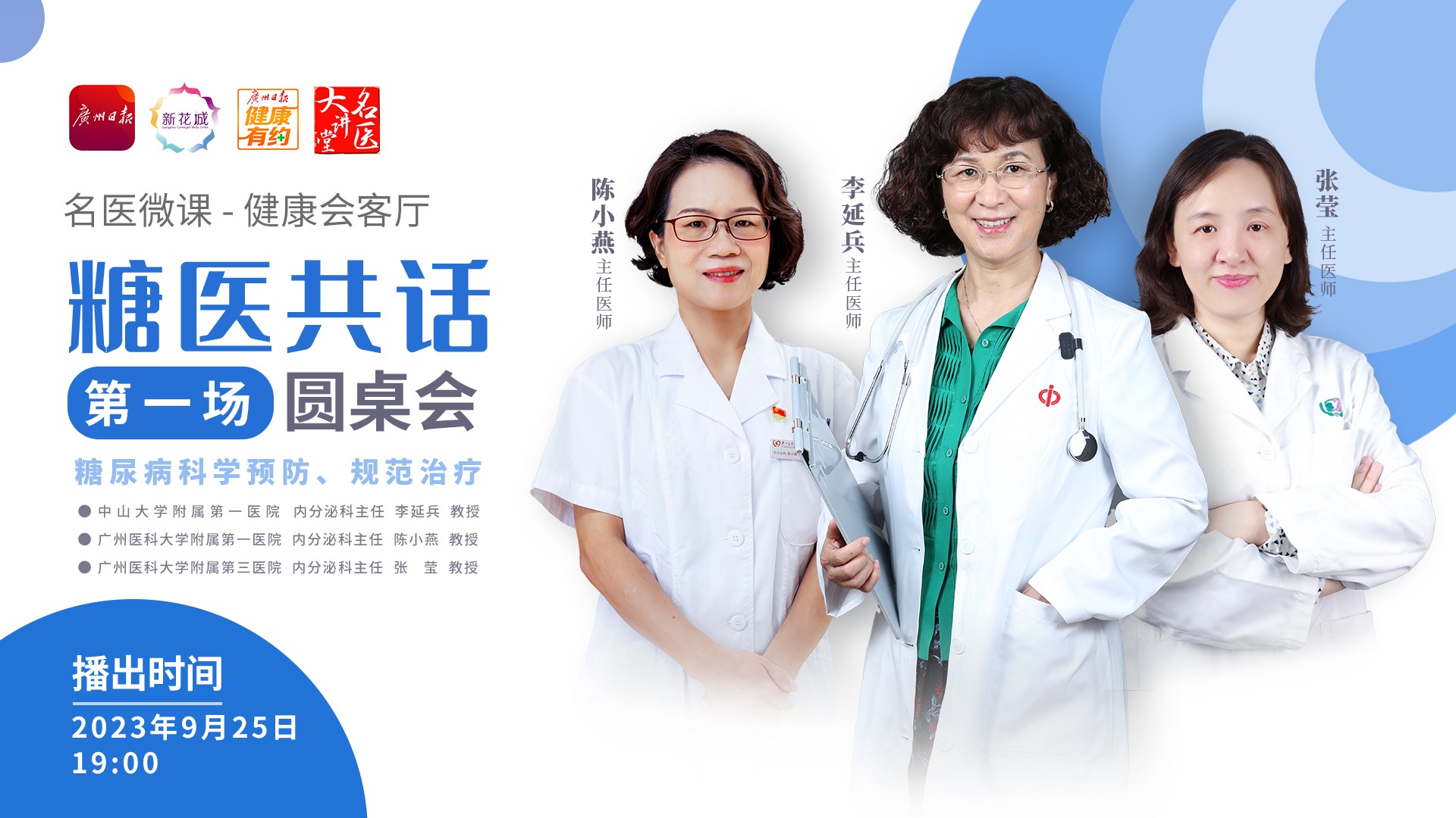 年轻人和女性如何远离糖尿病?糖尿病能否逆转?它有哪些“兄弟姐妹”,会跟随它一起“兴风作浪”?为了让公众增进对糖尿病科学预防、规范诊治以及生活管理的了解,给糖尿病患者和家庭加油鼓劲,9月25日19:00,广州日报健康有约“名医微课·健康会客厅”科普专题特推出“糖医共话”圆桌会。(资讯)