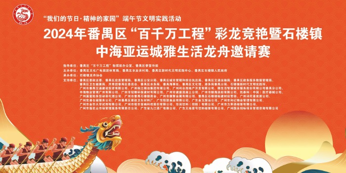 为弘扬传统文化,发扬团结协作、奋勇争先的龙舟精神,6月2日,番禺区文化广电旅游体育局、区农业农村局、区新时代文明实践中心、石楼镇联合举办“我们的节日·精神的家园”端午节文明实践活动——2024年番禺区“百千万工程”彩龙竞艳暨石楼镇中海亚运城雅生活龙舟邀请赛。当天赛事活动将依托广州市融媒体平台广州日报新花城app进行全程网络直播,为群众提供与众不同的观赛体验,一起来关注。