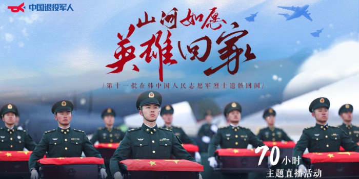 去时少年身,归来英雄魂。退役军人事务部宣传中心推出“山河如愿 英雄回家”——迎接第十一批在韩中国人民志愿军烈士遗骸回国70小时直播活动。通过多种形式多种视角重温英雄故事,邀广大网友共上一堂线上国防教育课。大家可以在任何时间进入直播间,留下对英雄们想说的话,一起接英雄回家。
