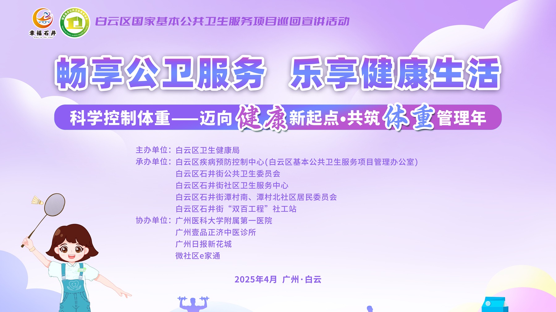 为全面推进国家基本公共卫生服务项目,提升居民健康素养,助力健康白云建设,白云区卫生健康局、区疾病预防控制中心、各基层医疗卫生机构联合推出“基本公共卫生服务”系列直播活动。4月15日,第二场直播将以“科学控制体重——迈向健康新起点·共筑体重管理年”为主题,为辖区居民提供权威、实用的健康指导,筑牢基层健康防线。