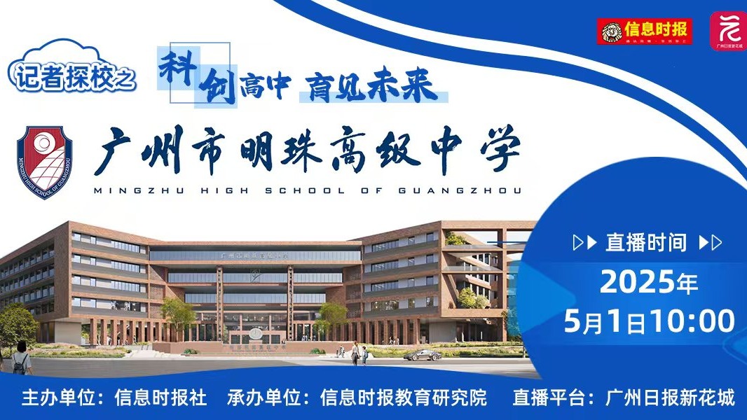 广州市明珠高级中学坐落在中新广州知识城核心区,将于今年首次招生。总建筑面积达86000平方米的校园由鲁班奖承建团队打造,配备智能化实验室、科创馆、真草球场等一流设施。明珠高中深耕科创教育领域,构建了独具特色的“1-2-4-6-N”科创课程体系。5月1日(周四)10:00,时报记者通过“云探校”形式,带你走进明珠高中,“解锁”学校办学优势,敬请关注!