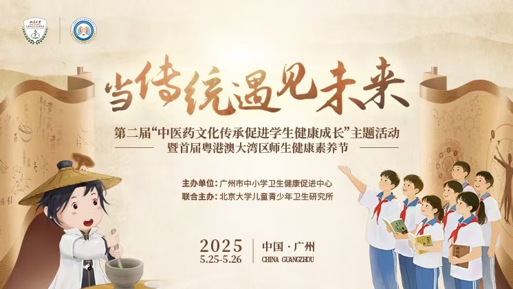 2025年5月24至26日,由广州市中小学卫生健康促进中心主办,北京大学儿童青少年卫生研究所联合主办的第二届“当传统遇见未来—中医药文化传承促进学生健康成长”主题活动暨首届粤港澳大湾区师生健康素养节在广州开幕,开展权威专家讲座、优秀成果案例发布、实地调研、校长传承对话等系列活动,来自全国各地的专家学者、教育管理者及健康教育工作者将共同探索中医药文化传承赋能学生健康成长的创新路径,交流实践成果。