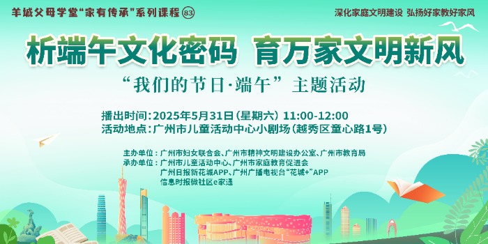 直播丨羊城父母学堂“家有传承”系列课程(83):析端午文化密码 育万家文明新风——“我们的节日·端午”