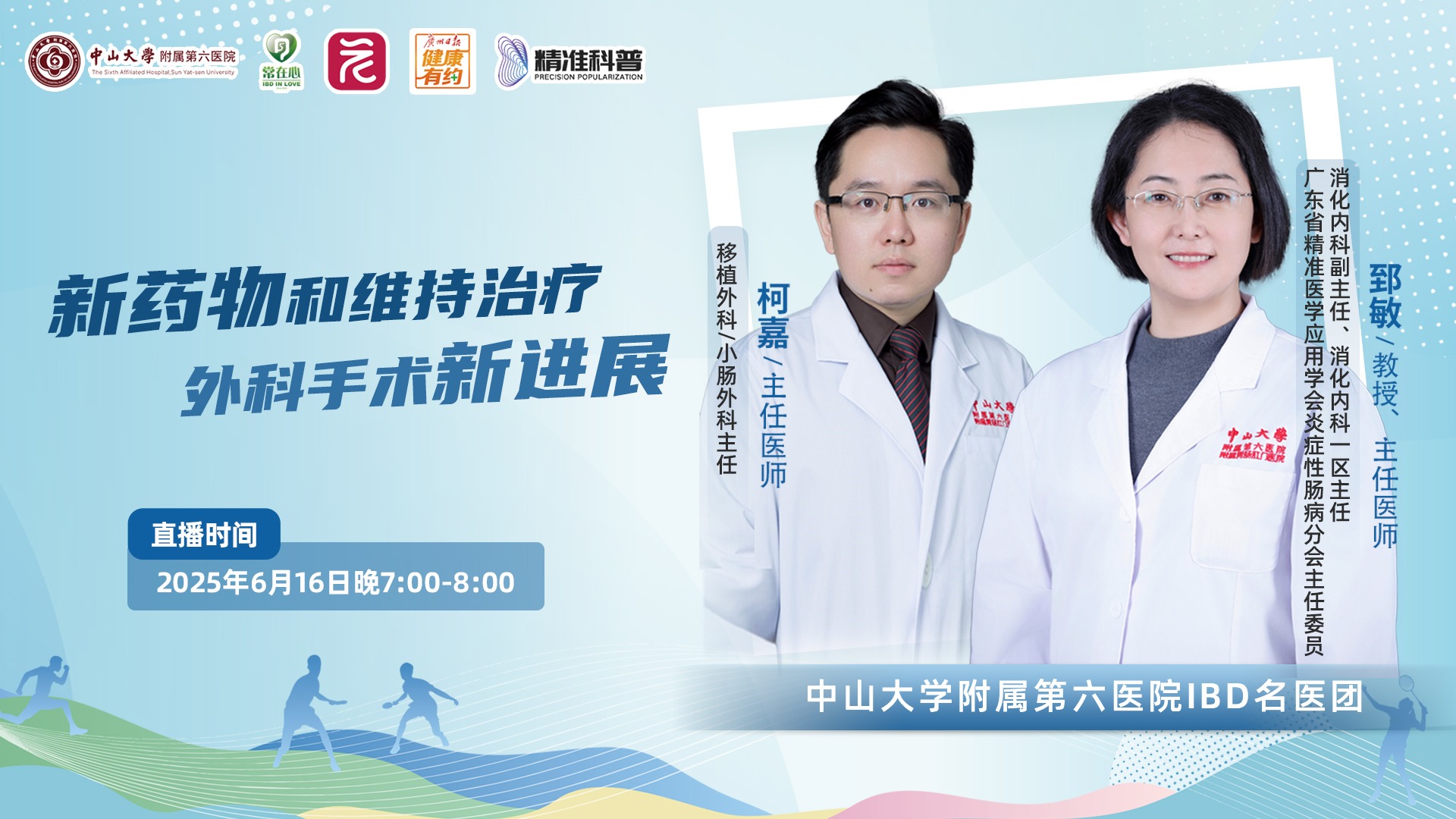 腹痛、腹泻、便血反复发作的时候,可能是身体发出的警报——炎症性肠病(IBD)可能来袭。近年来,越来越多的年轻人与炎症性肠病意外相遇。新的药物“乱花渐欲迷人眼”,该怎么选择?外科手术有哪些新的进展?为了让大众更了解IBD,也为患者和家属带来专业科普,本期广州日报健康有约名医大讲堂微课,来自中山大学附属第六医院IBD名医团两位专家为大家解惑答疑。
