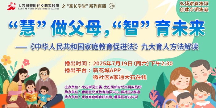 直播 | 大石街家长学堂第78期:“慧” 做父母,“智” 育未来——《中华人民共和国家庭教育促进法》九大育人方法解读