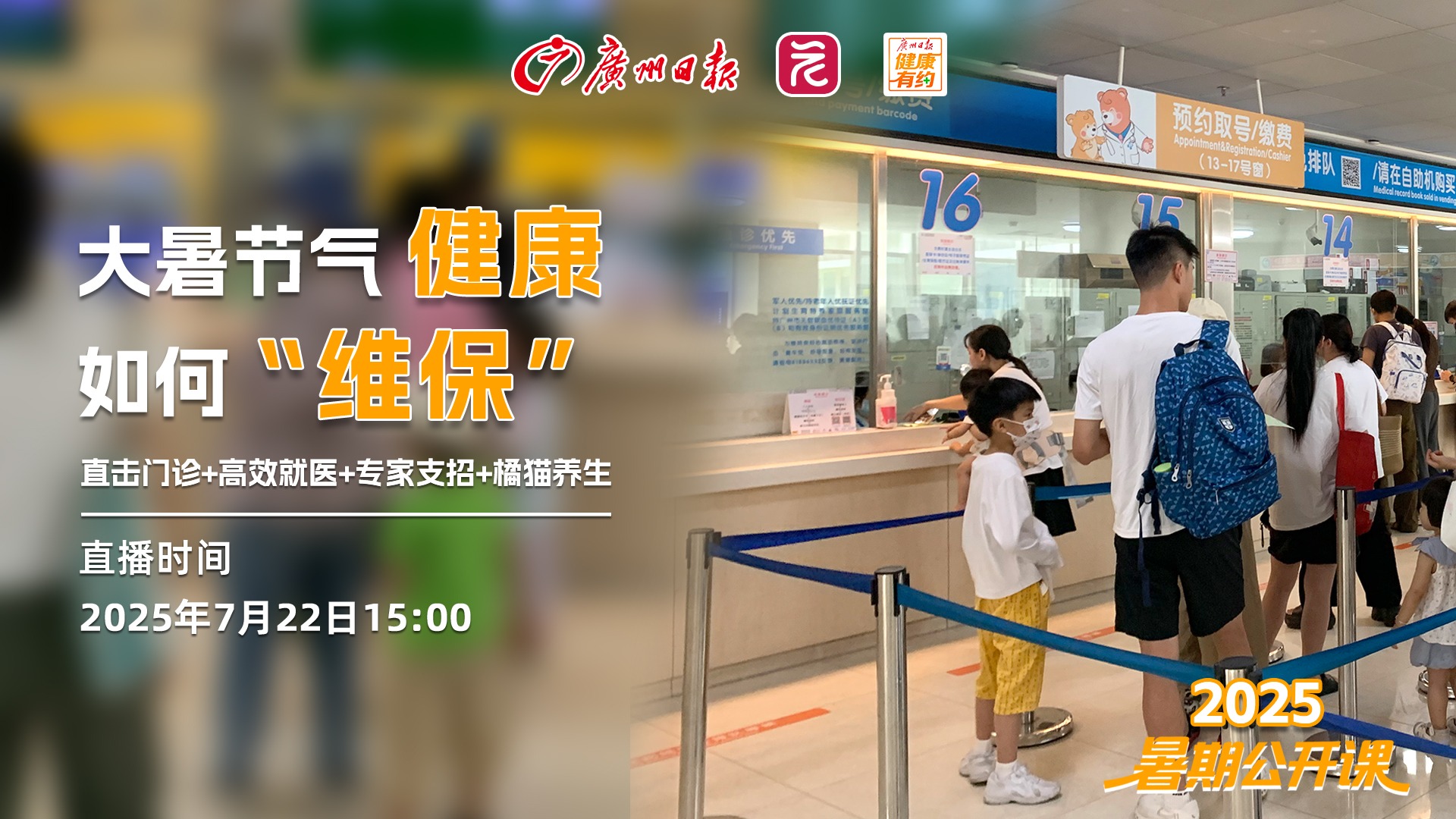 随着火热的暑假到来,孩子们一年一度的“返厂检修”大戏正式拉开帷幕,推高了医院门诊的“热度”,家长该如何高效就诊,妥善安排暑假出游和就诊的档期呢?今天恰逢二十四节气的大暑节气,正是阳光最盛、气温最高的时候,湿热交蒸到达了顶点,我们该如何养生保健?广州日报记者将兵分几路,带大家探访医院现场,并邀请来自广州医科大学附属妇女儿童医疗中心、广东省中医院的专家们主讲暑期公开课,为大暑节气的健康养护支招。