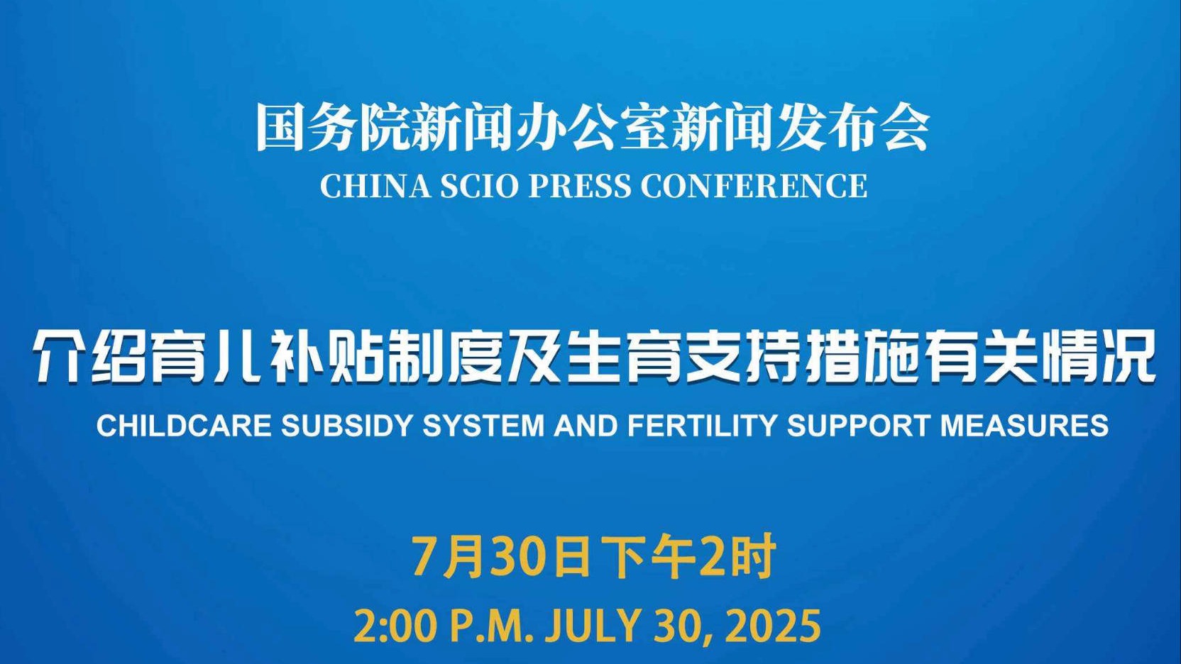 国务院新闻办公室将于2025年7月30日(星期三)下午2时举行新闻发布会,请国家卫生健康委副主任郭燕红和财政部、国家医保局、全国总工会有关负责人介绍育儿补贴制度及生育支持措施有关情况,并答记者问。