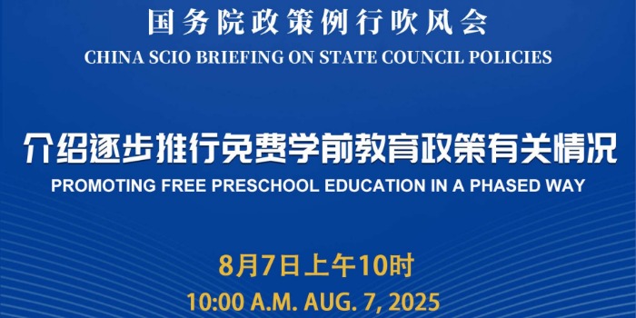国务院新闻办公室将于2025年8月7日(星期四)上午10时举行国务院政策例行吹风会,请财政部副部长郭婷婷和教育部有关负责人介绍逐步推行免费学前教育政策有关情况,并答记者问。