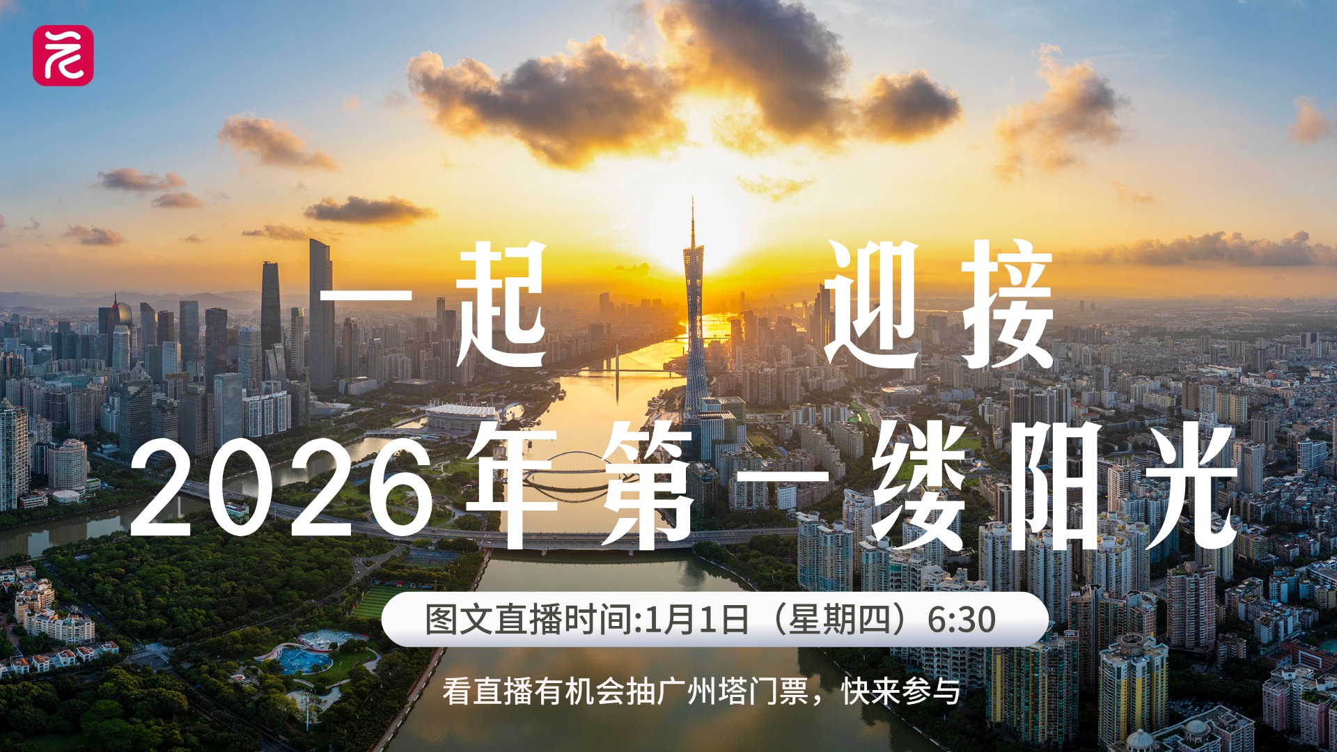 2026年第一缕阳光即将点亮羊城!1月1日,广州日报新年特别直播,邀您共同登上广州塔450米高空,与摄影大V和“大湾鸡”一道,迎接新年曙光。同时,广州日报联合新疆博尔塔拉融媒体中心,开启一场横跨5000公里的光影接力。从广州塔的第一抹阳光,到赛里木湖的第一道金边,同一片天空下的两处绝美日出将接力升起。