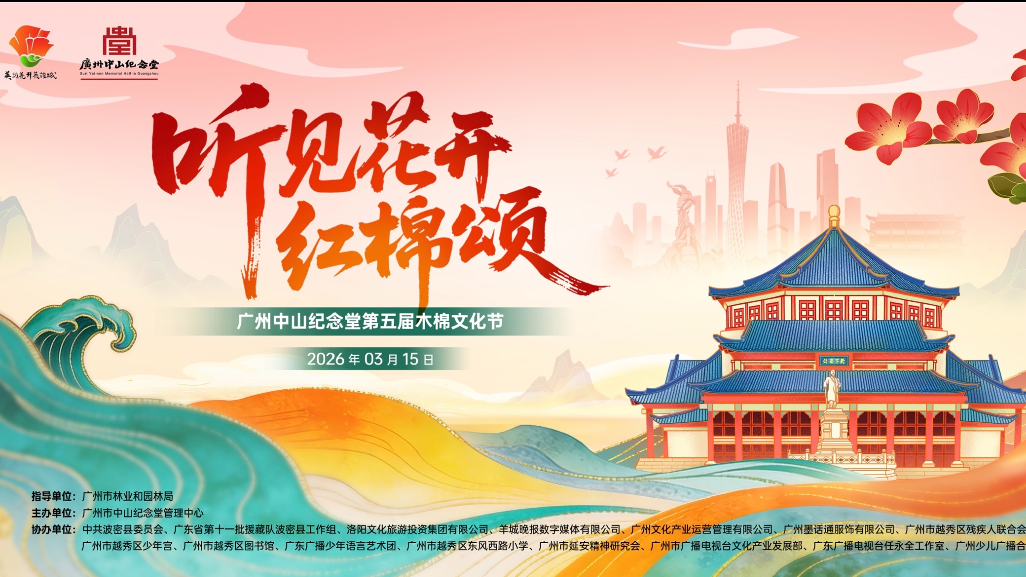 为深入传承弘扬孙中山先生的伟大爱国精神,持续擦亮“英雄花开英雄城”红色文化品牌,在中共广州市委宣传部、广州市林业和园林局的指导下,广州中山纪念堂于2026年3月15—31日举办“听见花开·红棉颂”第五届木棉文化节活动。本届木棉文化节启动仪式定于2026年3月15日上午09:30在广州中山纪念堂东平台木棉王附近举行。届时,现场将融合红色艺术展演、文创赛事颁奖、国风中山装设计大赛成果走秀、三城花漾联动等多元内容,全面呈现木棉文化内涵与城市精神风貌,凝聚奋进力量。