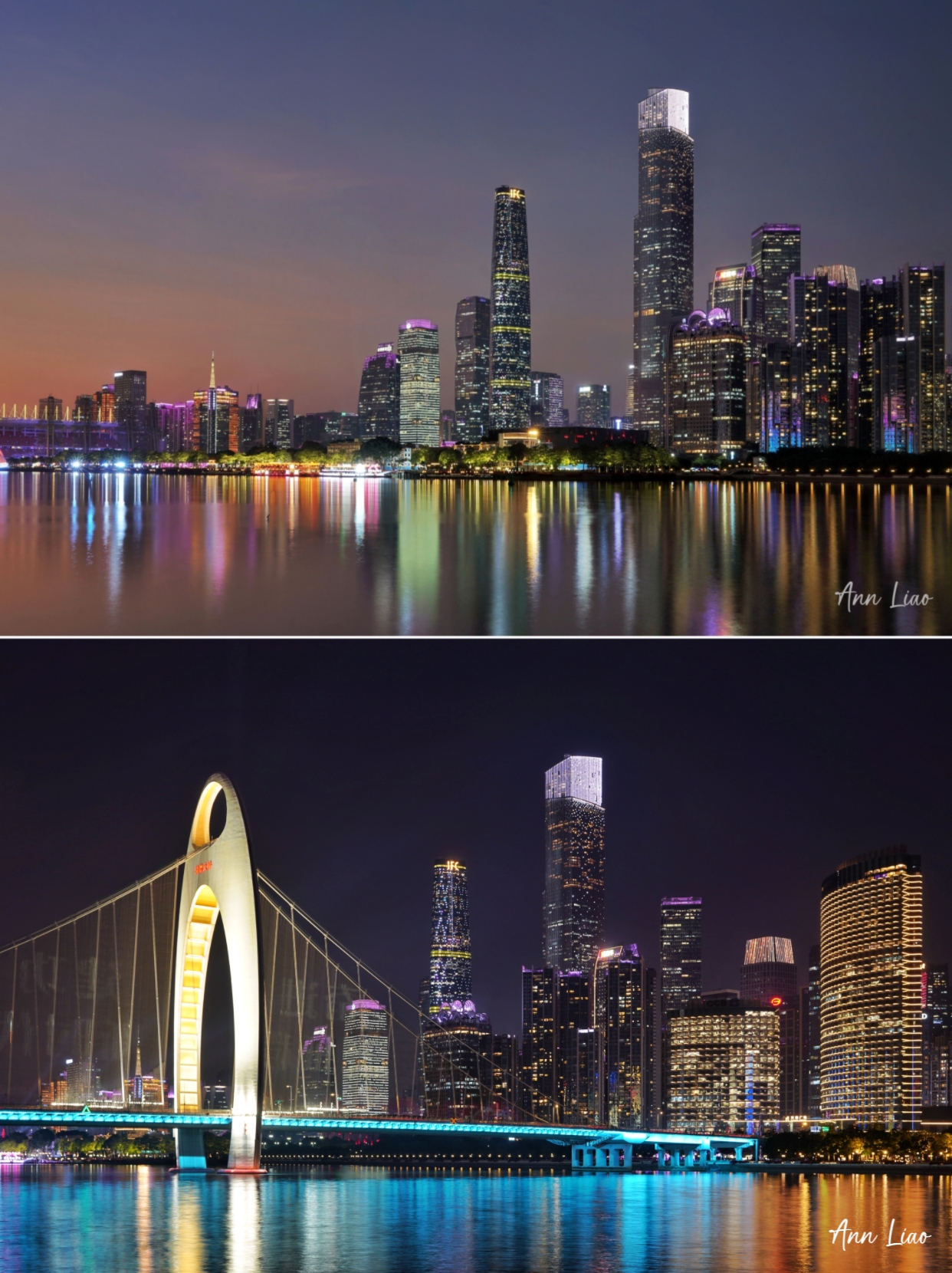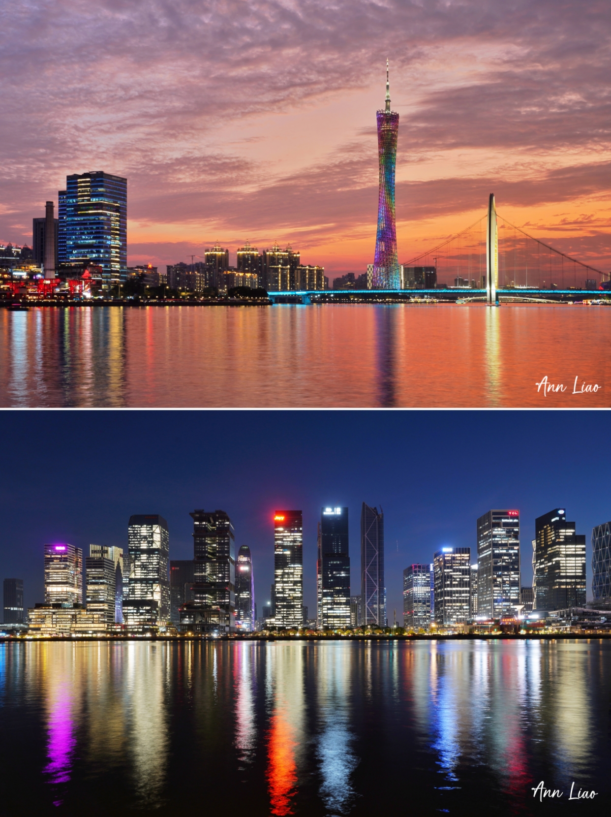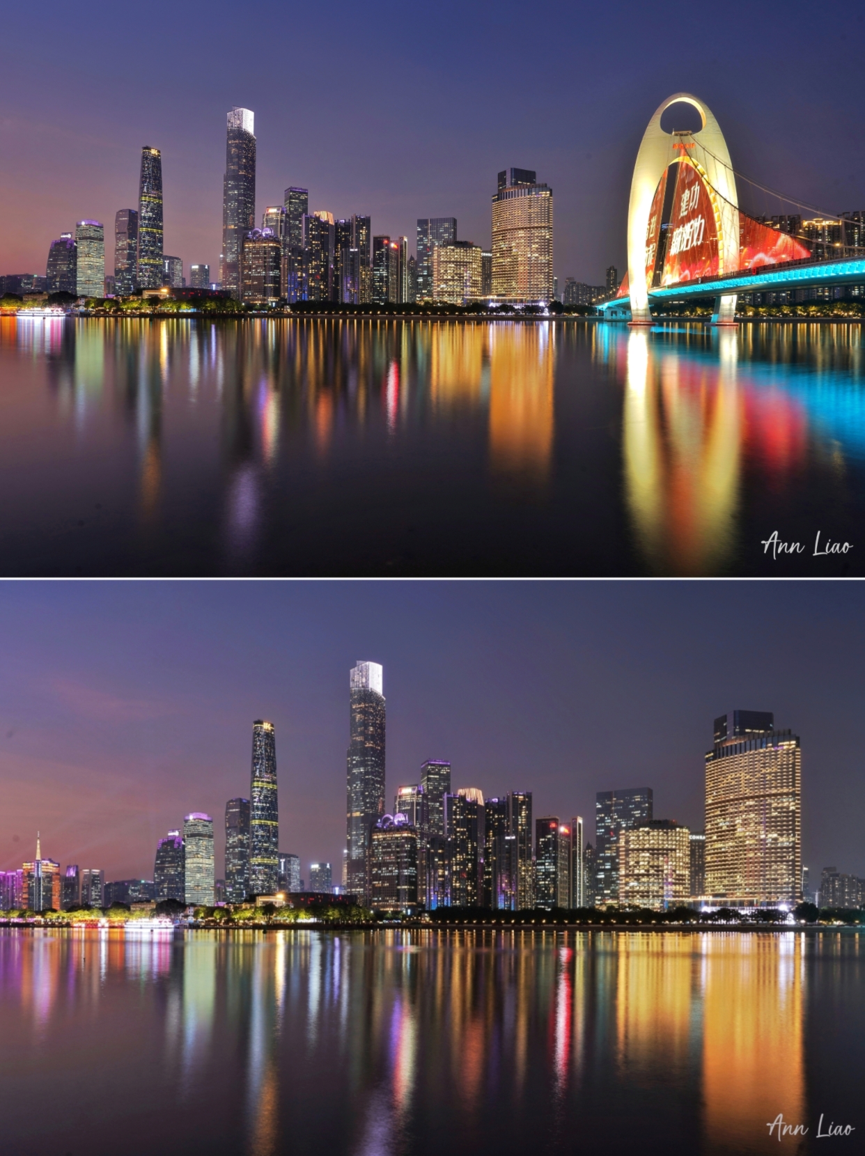 沿江选择自己喜欢的机位,拍广州塔、猎德大桥、琶洲西区CBD。