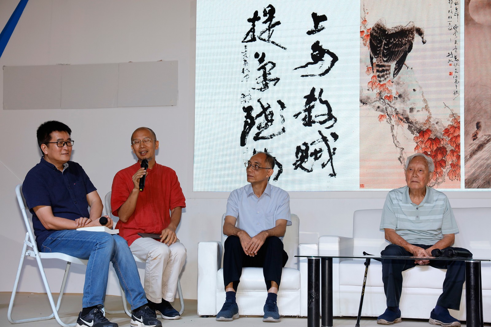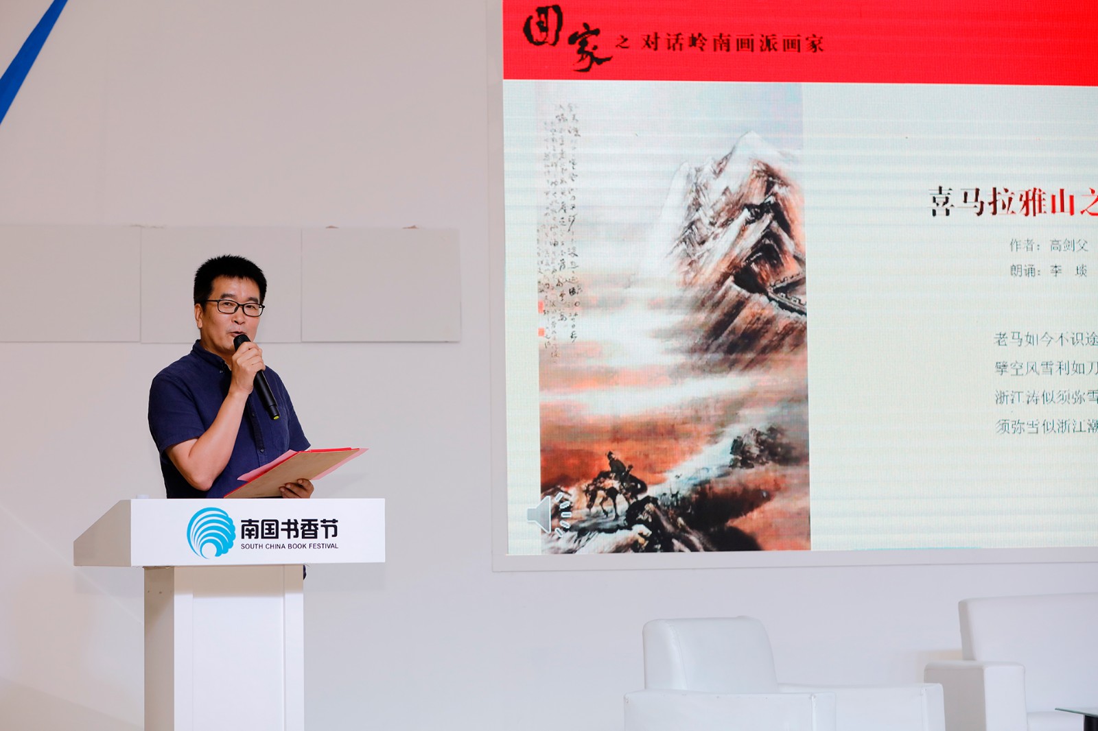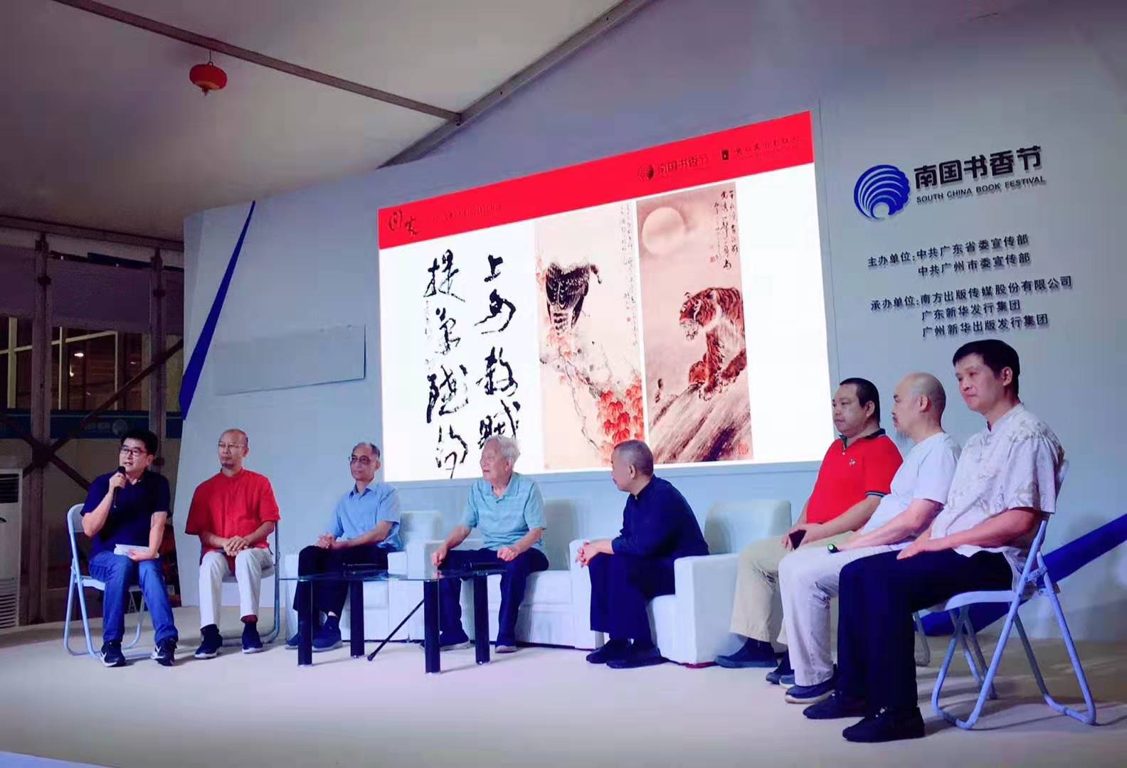 又是一年书香节,8月18日,2019年南国书香节"开卷有艺日"的书香之夜,"艺术对话之回家’——对话岭南画派画家"活动在广交会展馆主题沙龙区举行。活动由南国书香节组委会、岭南美术出版社、高剑父纪念馆和广州书画专修学院主办,岭南画派传人、著名中国画画家陈金章,深圳关山月美术馆馆长陈湘波,广州市美术家协会副主席刘诗东,广州书画专修学院副院长朱颂民,高剑父纪念馆馆长李琰,广州艺术博物院副研究员王坚,江门市画院院长黄仕强,高剑父纪念馆学术馆长许沛波,岭南古琴艺术传承人区宏山,朗诵家解翔、刁鹏等嘉宾出席了本次活动。