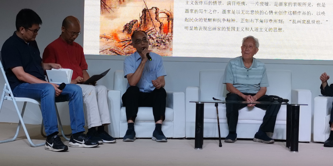 活动现场岭南画派重要传人陈金章及知名艺术家等围绕高剑父的家国情怀和艺术创新精神展开讨论。陈金章教授以朴实的语言讲述了他眼中的高剑父及当地上课时的情景,对高剑父先生的家国精神极为肯定与赞扬,也大力支持《高剑父研究文集》的出版和发行。陈金章教授同时表示,高剑父先生的绘画本身现代性强,艺术应当与时共进。