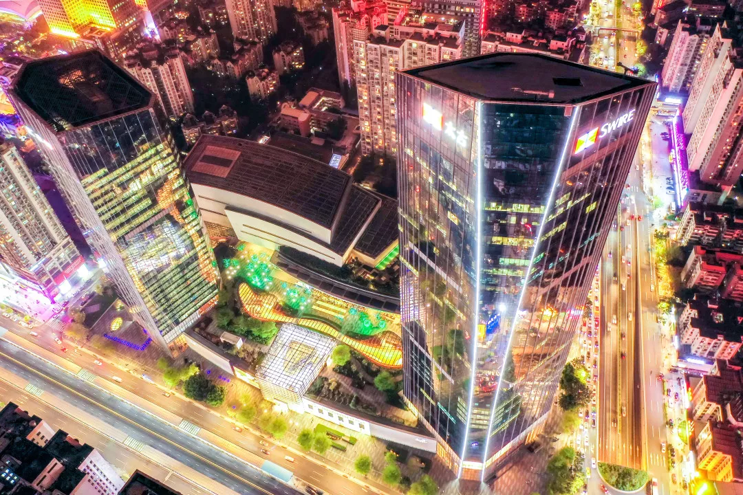 △太古汇与周边夜景。广州太古汇(TaiKoo Hui Guangzhou)位于广州天河中央商务区核心地段,太古汇一座,高211.95米,39层。整个项目包括一座大型购物中心,两幢甲级写字楼,是集休闲娱乐、商贸活动和文化欣赏于一身的广州新亮点。广州日报全媒体记者 苏俊杰 实习生 廖明璨 摄