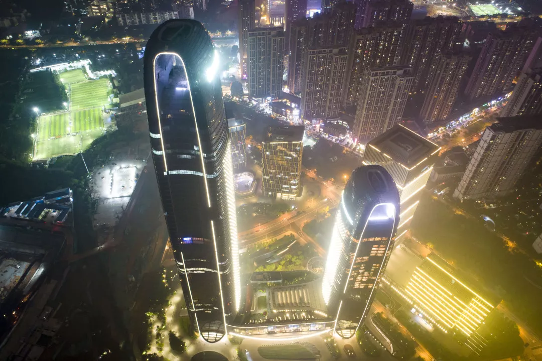 △530米高的广州东塔和437.5米高的广州西塔,它们是灯火辉煌的珠江新城最高的两栋建筑。广州日报全媒体记者 苏俊杰 实习生 廖明璨 摄