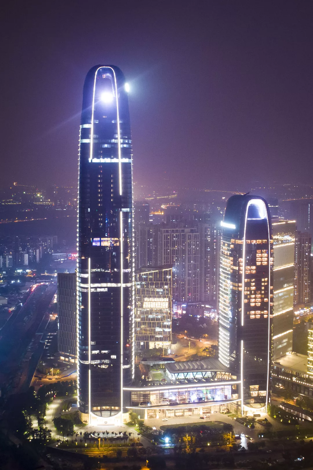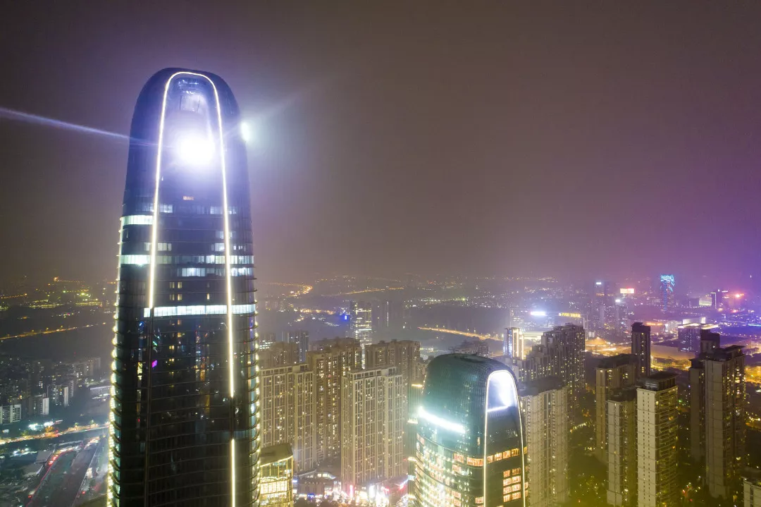 △广晟国际大厦和周围璀璨的夜景。广晟国际大厦,位于广州天河区珠江大道西和金穗路交界处,在2012年建成,总高度为360米。广州日报全媒体记者 苏俊杰 实习生 廖明璨 摄