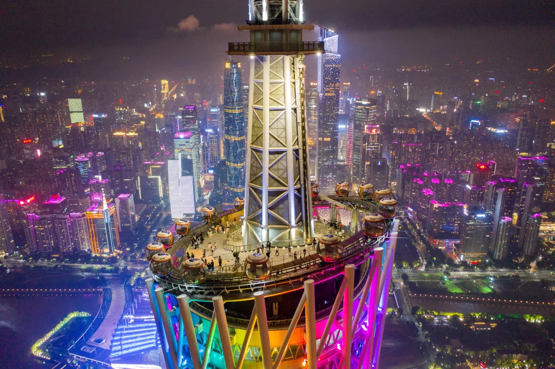 △广州塔塔身顶部的平台,是游客观光赏景游玩的绝佳去处。广州日报全媒体记者 苏俊杰 实习生 廖明璨 摄