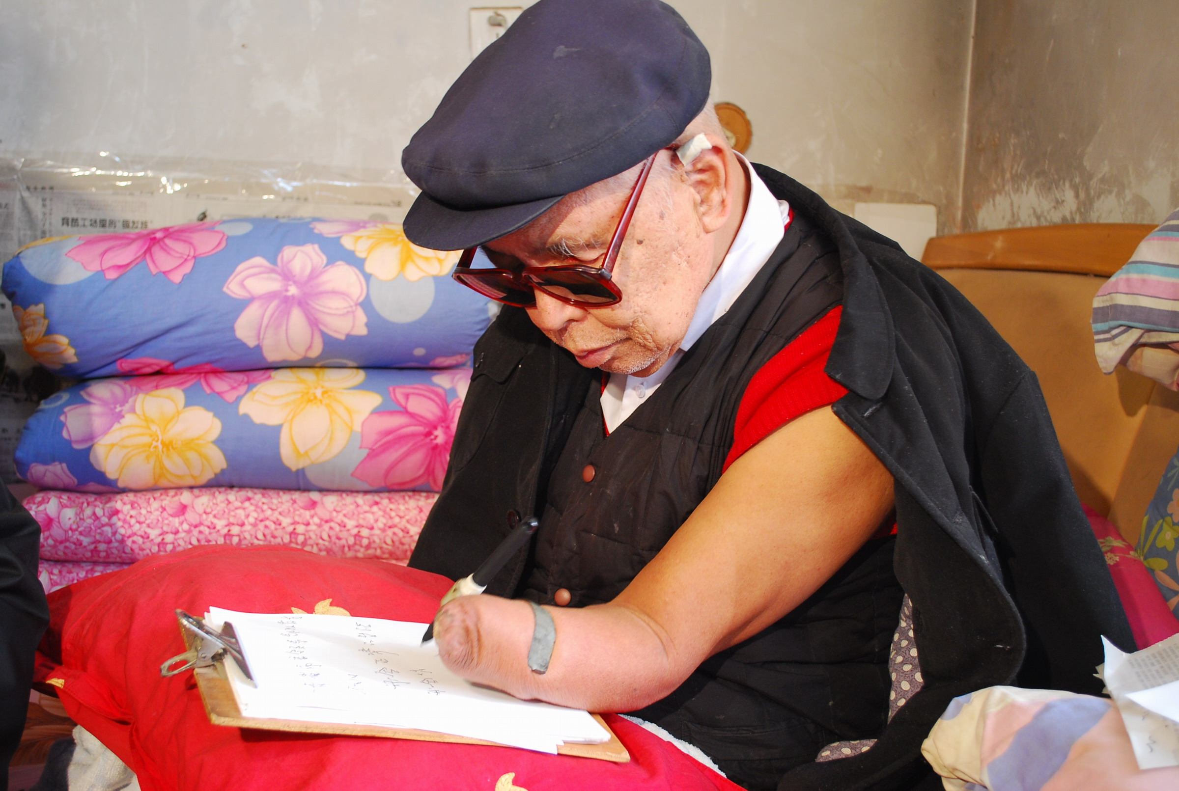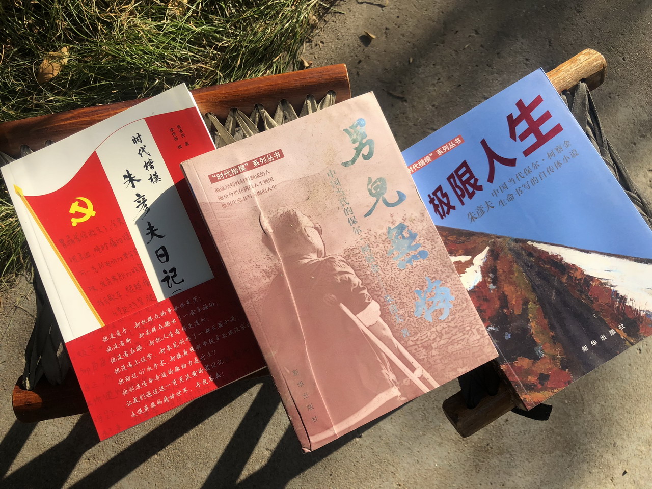 没上过学的他,更在退休后用残肢抱笔,写下了过百万字的手稿,完成了两部自传体长篇小说《极限人生》和《男儿无悔》。