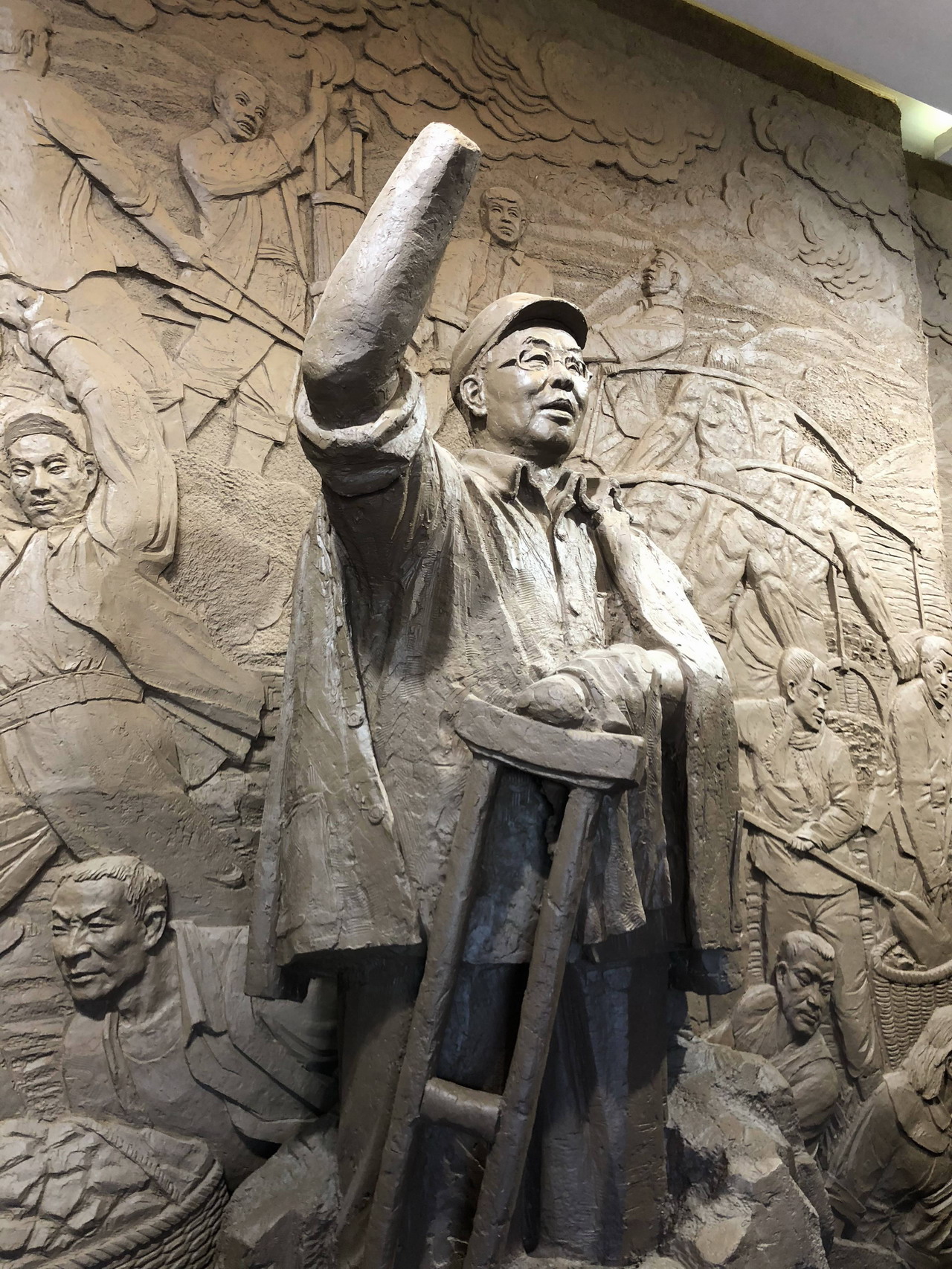 朱彦夫展览馆里的朱彦夫雕像,他是村民心中的启明灯