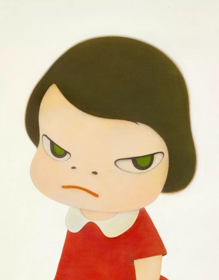 回归到画面,奈良美智的作品给我们呈现的是一个日式的卡通形象。