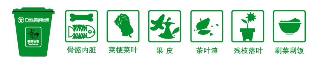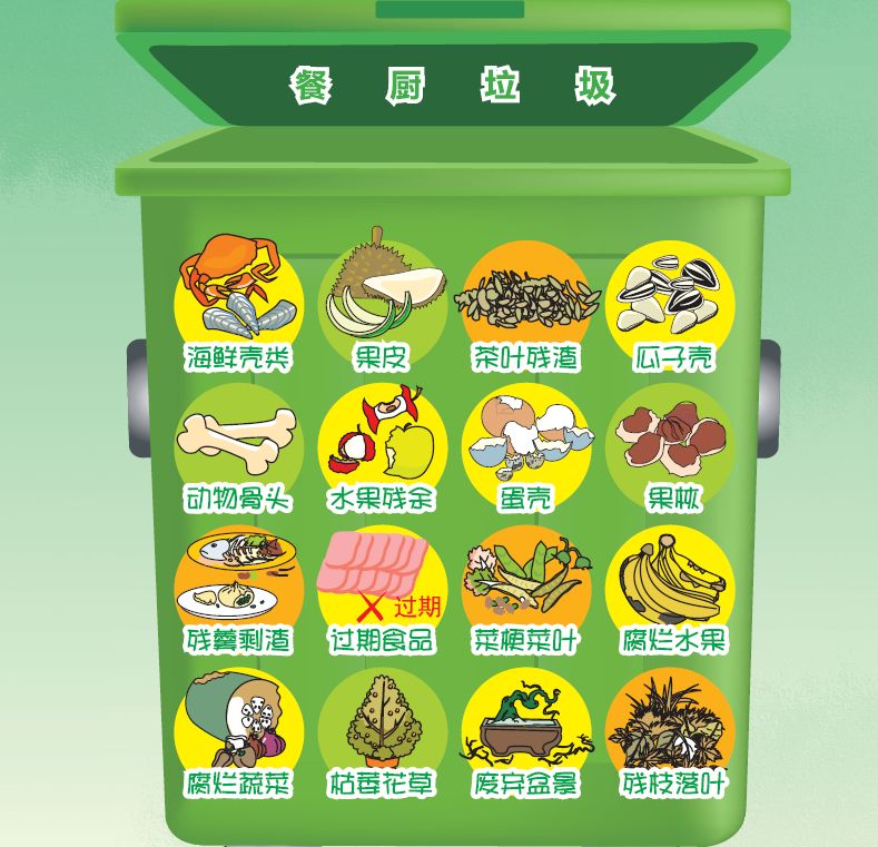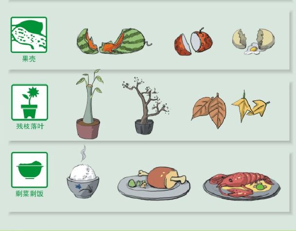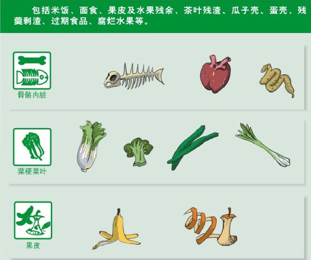 注意:由于餐厨垃圾需要粉碎,像大棒骨、贝壳、榴莲壳这样的垃圾,虽然与食物有关,还是应该归属其他垃圾。
