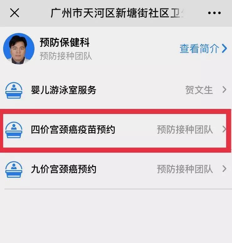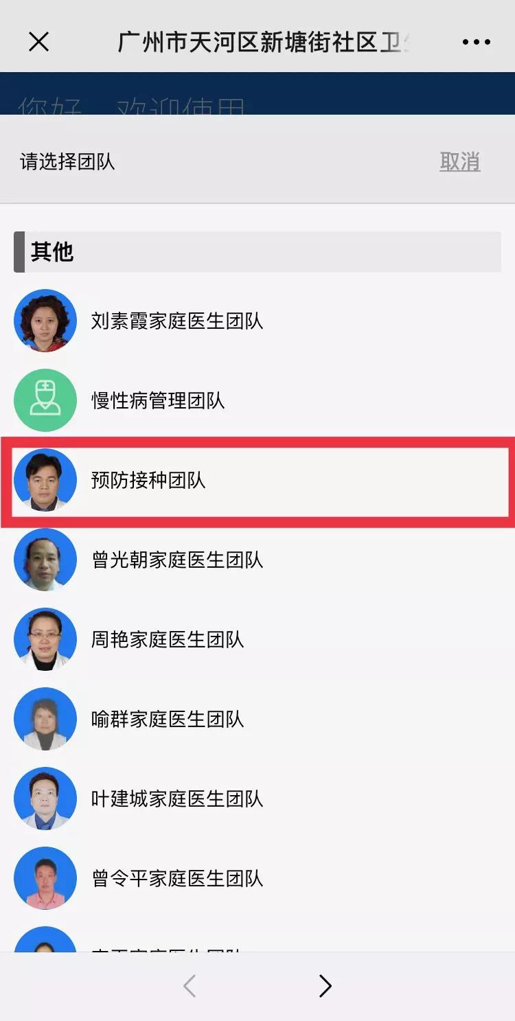 点击“我要预约”,然后在团队列表中选择“预防接种团队”