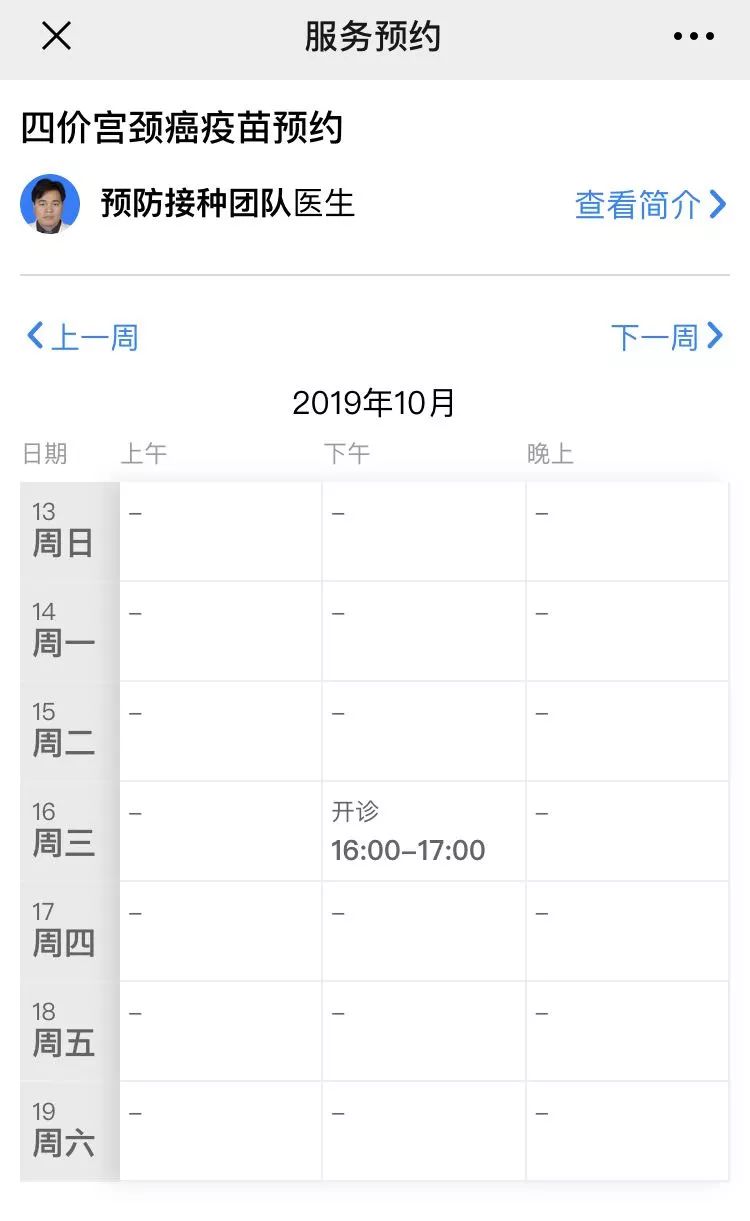 选择“四价宫颈癌疫苗预约”,选择预约时间段10月16日(周三)16:00-17:00