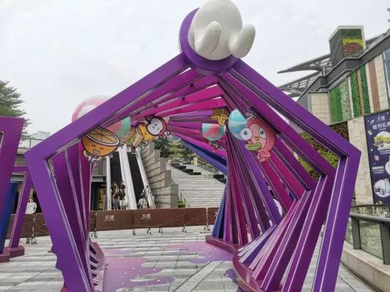 天环广场的主题别出心裁——“飞奔到月球”艺术展,充满艺术感的卡通形象、超甜糖果色的碰撞,营造了梦幻空间。在B1的下沉广场,能偶遇不规则的奇幻走廊,扭曲的空间与星球元素交相点缀,星际独角兽穿梭于流转的光影中,给人极其梦幻的视觉享受。还有自带白色光芒的环状秋千,实在是拍照凹造型必备。