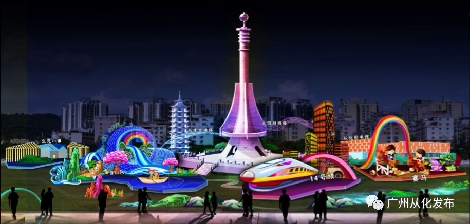 2019广州国际灯光节从化分会场主要以流溪河沿岸的河堤、公园作为灯光节和提升工作的区域。灯饰主要体现休闲娱乐,表现绿水青山,再现地域文化,以及展现未来科技。