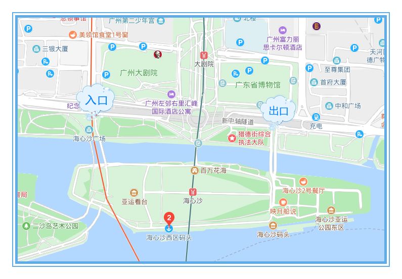 7、入口位置:天河区临江大道从海心沙亚运公园3号桥检票口(广州农商银行总行大厦对面)验票进场;出口位置:临江大道从海心沙亚运公园1号桥离场