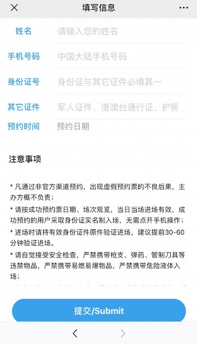 5、预约完成后市民游客需凭身份证等有效预约证件刷证入场,当日当场进场有效,进场时请持有效身份证件原件验票,票证一致方可入场。