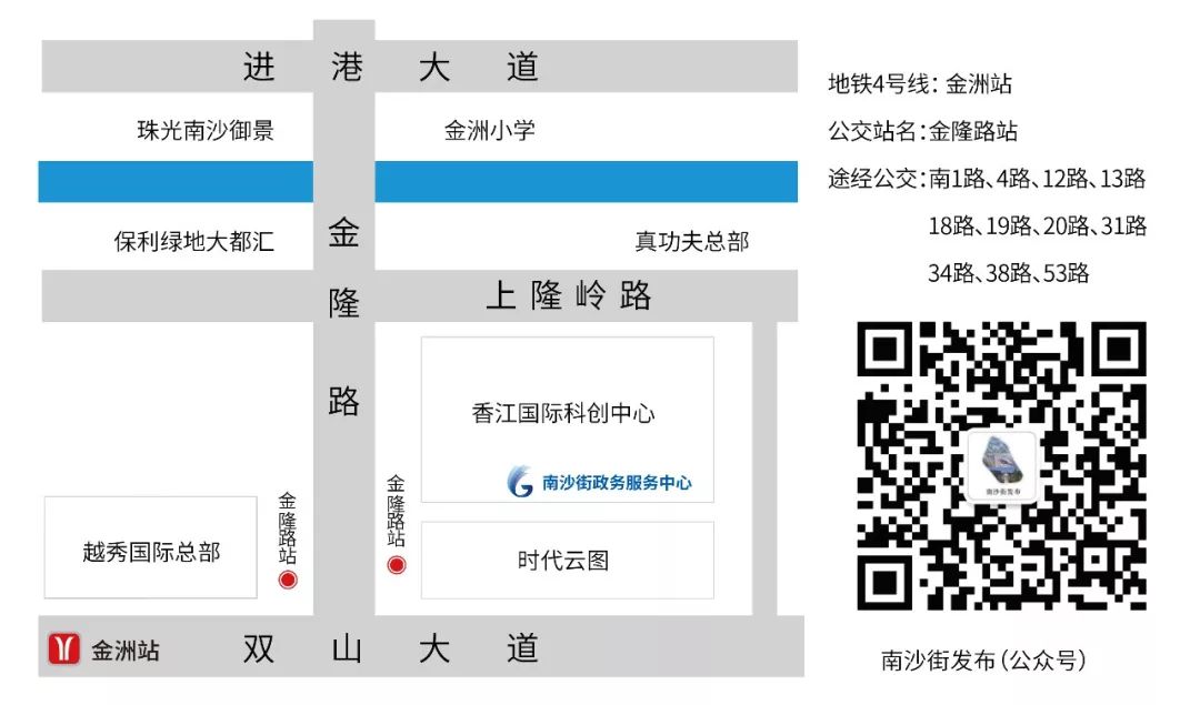 新址对外服务后,办事车辆可停放在位于香江国际科创中心地下停车场(约800个车位),届时原办公地址(南沙区进港大道南沙街道办事处大楼旁的南沙街政务服务中心)将停止对外办公。