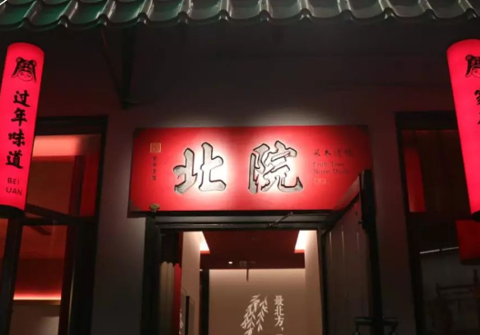 北院是一家东北菜馆,小e一走进去,就被里面大红色调的装修风格吸引住了,红色的挂灯、窗户、菜牌……很喜庆,体现出北方人们的热情豪爽。