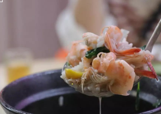 热腾腾的一锅鲜虾砂锅粥,端上台时锅里还在冒泡泡,香喷喷的,很滋味。而且,重点是里面的料很足哦,随便舀一勺,都能装到几只大虾。小e觉得,点一份小的砂锅粥,就够两、三人的分量了。59一份,三人食用,人均20打卡成功。